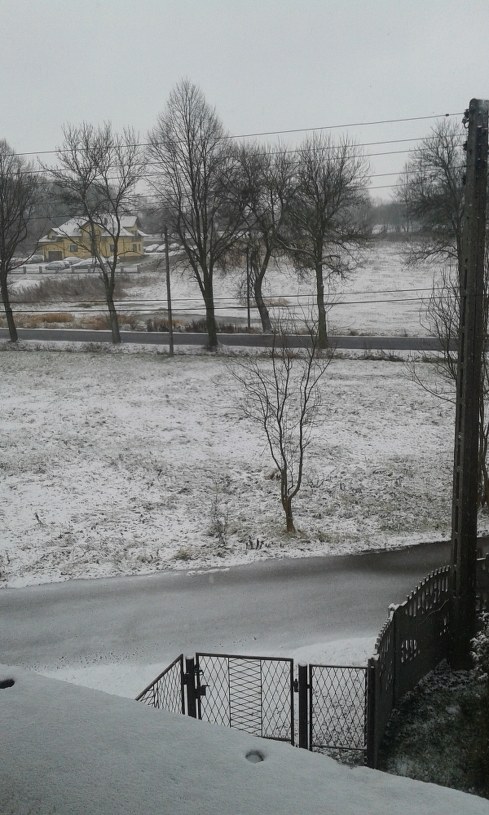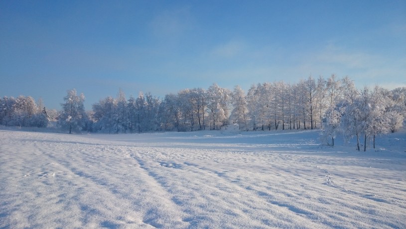 08:06 W okolicach Ostródy i Lubawy w woj. warmińsko-mazurskim droga jest całkowicie biała, na drodze leży zmarznięty śnieg, są tylko niewielkie pasy czarnego asfaltu - usłyszeliśmy od Mariusza. Ponadto jest bardzo zimno - o poranku termometry pokazywały minus13 stopni Celsjusza.