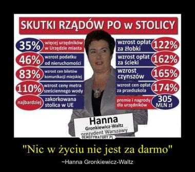 Hanna Gronkiewicz- Waltz, wiceprzewodnicząca PO i prezydent Warszawy, zrobiła dziś coś, co na pewno nie jest wybrykiem czy idiotyzmem. Podczas podniosłych uroczystości z okazji 73 rocznicy wybuchu powstania w getcie warszawskim, chcąc - no właśnie nie wiadomo co - chcąc więc coś powiedzieć w związku z tamtym wielkim heroizmem polskich Żydów, przypomniała, że kilka miesięcy temu spalono we Wrocławiu kukłę Żyda. I dała do zrozumienia, że polska klasa polityczna milczy w sprawie antysemityzmu, z wyjątkiem jej, czyli PO, no bo inaczej trudno zrozumieć sens tej wypowiedzi.