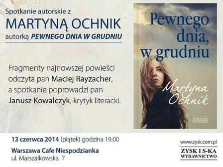 Martyna Ochnik jest autorką pierwszej książki mówiącej o smoleńskiej tragedii, którą czytalismy na naszej antenie. "Oszołomy". Spotkanie dotyczyć bedzie najnowszej twórczości autorki. Zapraszamy.